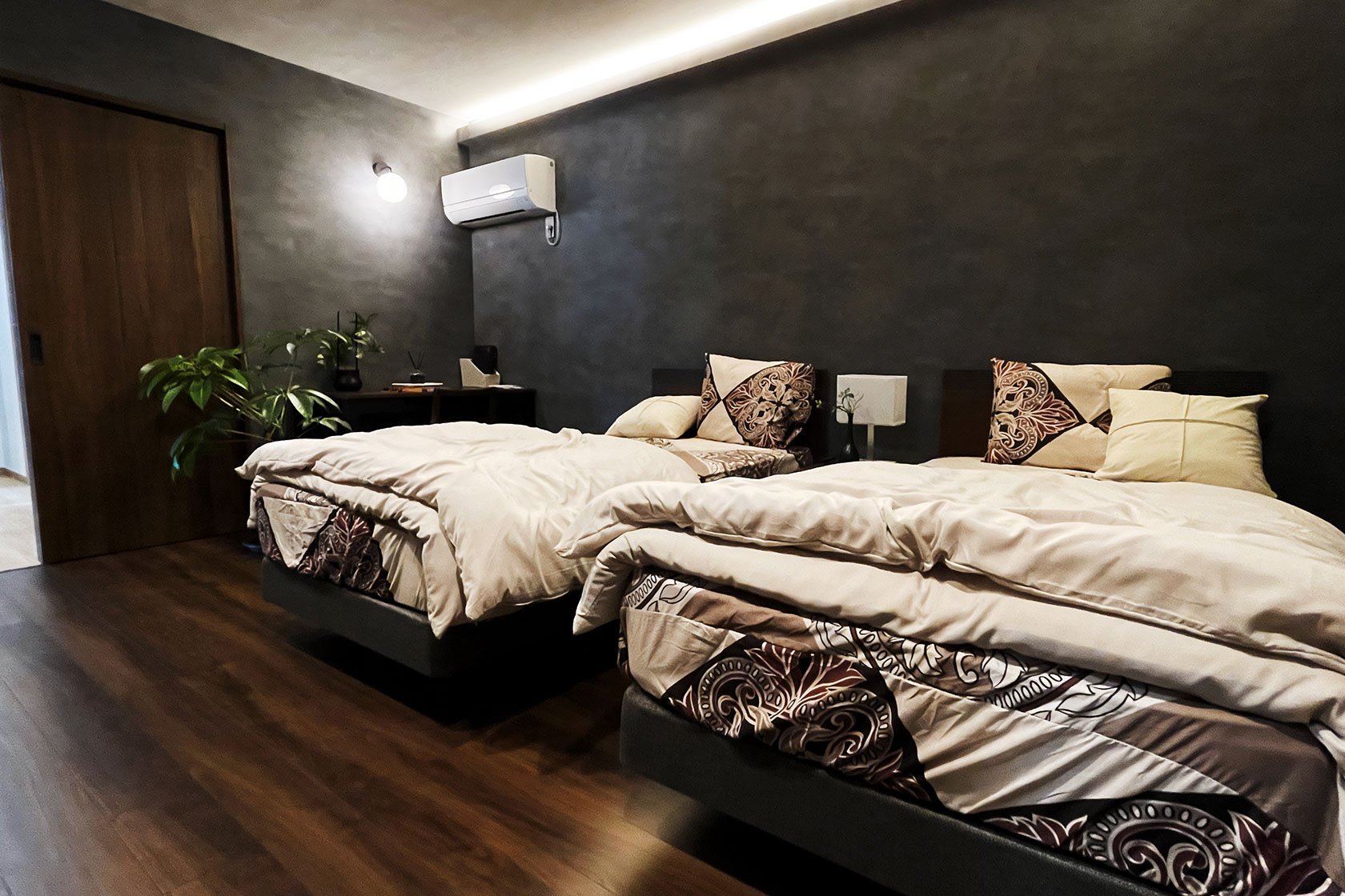 勾配天井や大開口サッシにより明るく開放的な空間になっています。