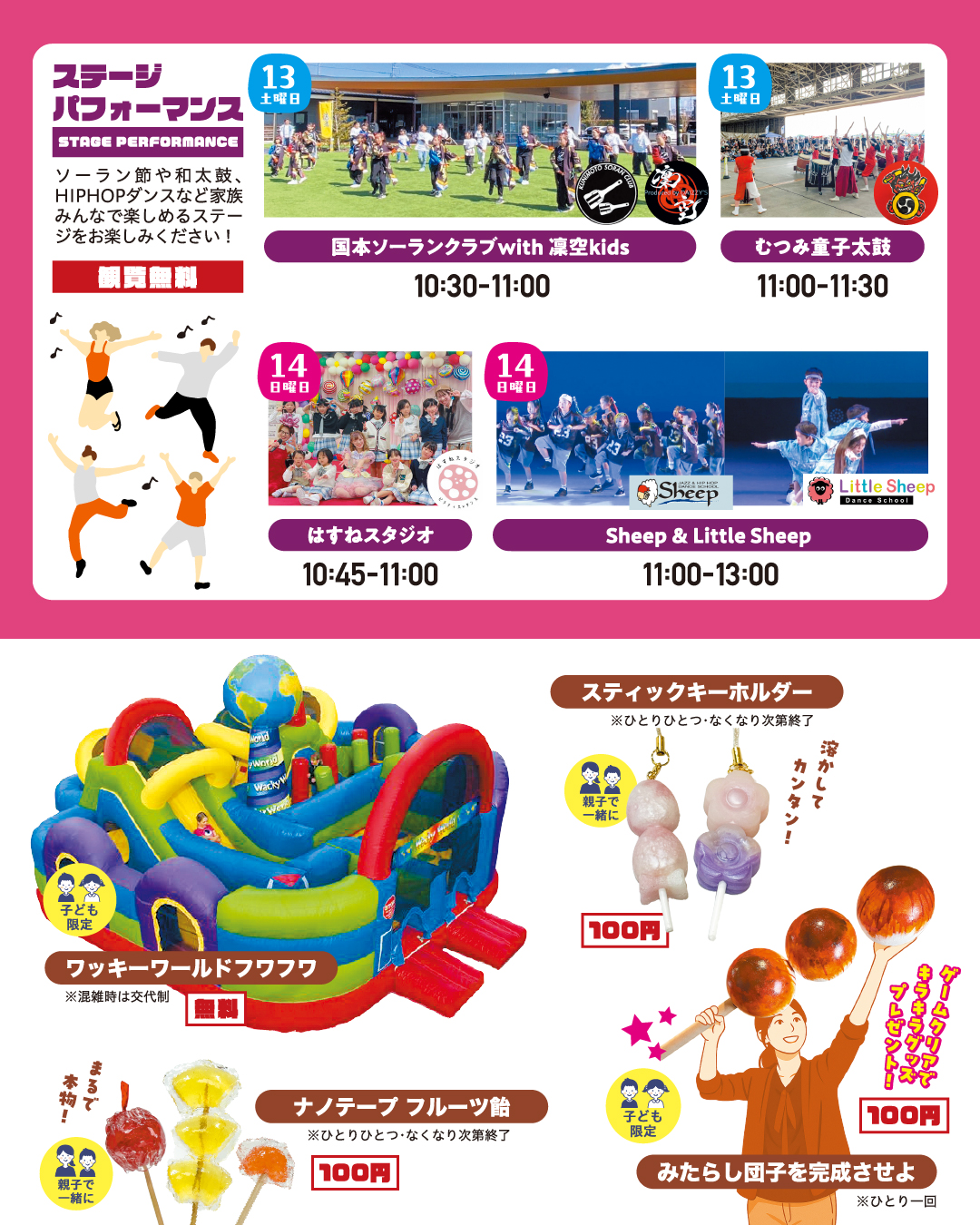 フード販売の他にも、ステージパフォーマンスやゲームに工作など、