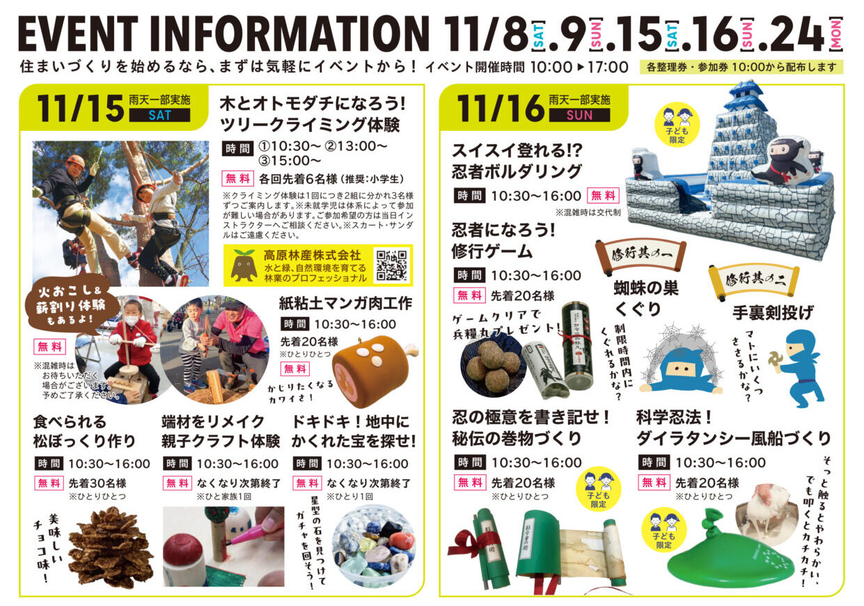 家族みんなで自然を感じたり、忍者になりきったり――どちらも体を動かして思いきり楽しめる内容です!