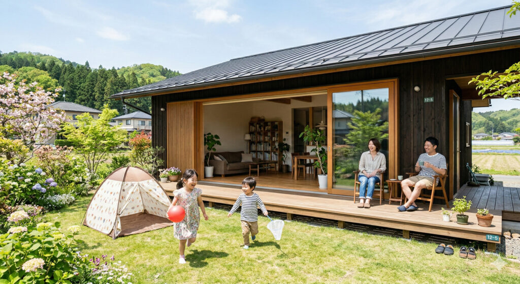 栃木県は四季の変化がはっきりしており、特に春の気候は非常に穏やかです。平屋は地面との距離が近いため、窓を開ければすぐそこに庭の緑が広がり、室内と外が一体化したような開放感を味わえます。リビングから直接庭へ出られる設計にすることで、お子様が「ちょっとお庭で遊んでくるね」と、外遊びをより身近に感じられる環境が整います。