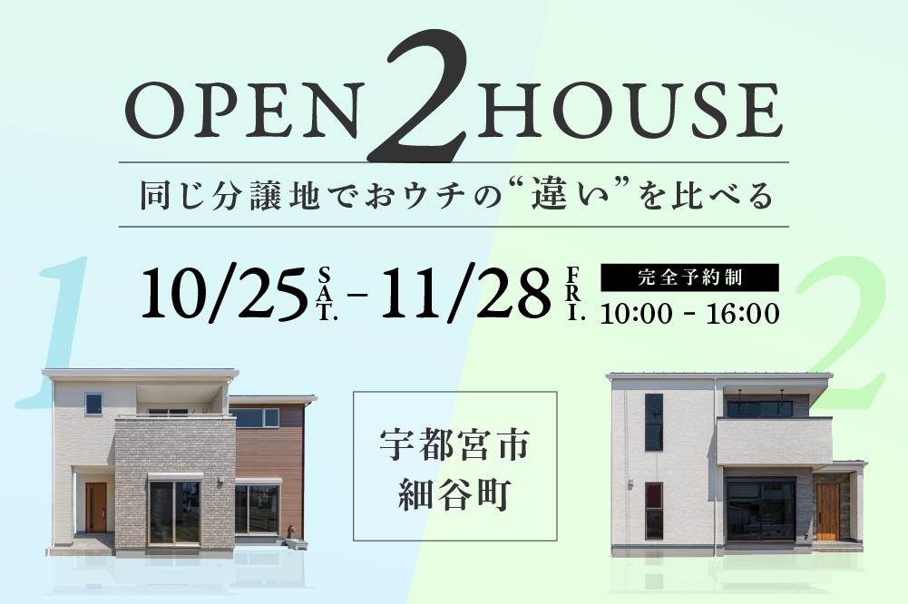 HP:【完全予約制】同じ分譲地でおウチの“違い”を比べる「OPEN“2”HOUSE」(宇都宮市細谷町) | イベント – ノーブルホーム