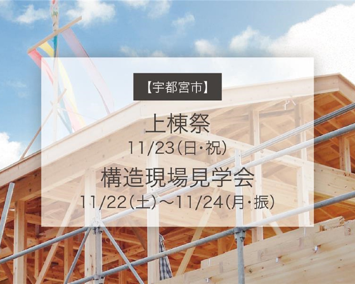 2025年11月22日(土)~11月24日(月・振)に、宇都宮市内のオーナー様邸にて上棟祭と構造現場見学会を開催いたします!