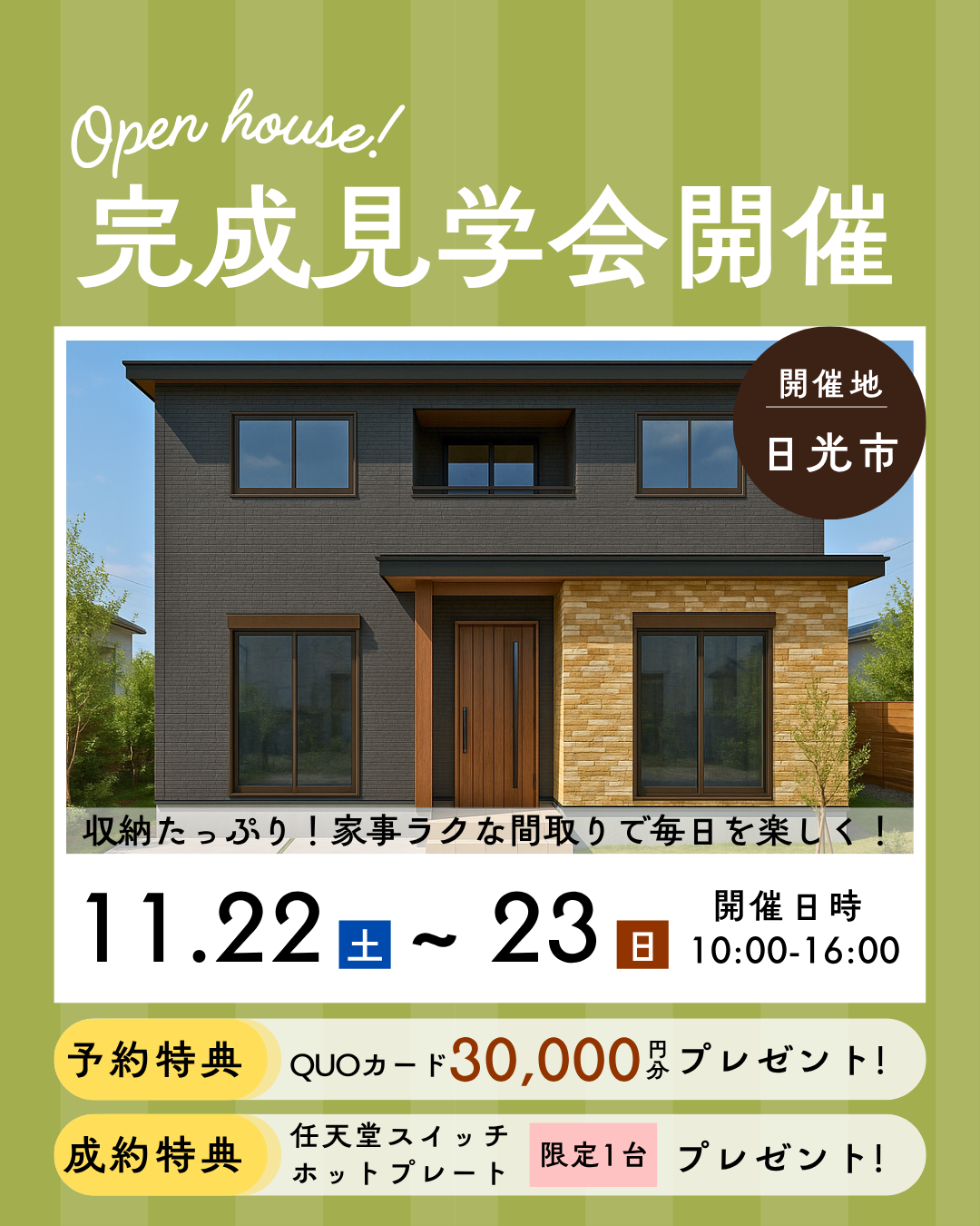 【日光市】完成見学会開催!11/22(金)〜11/23(日) 限定