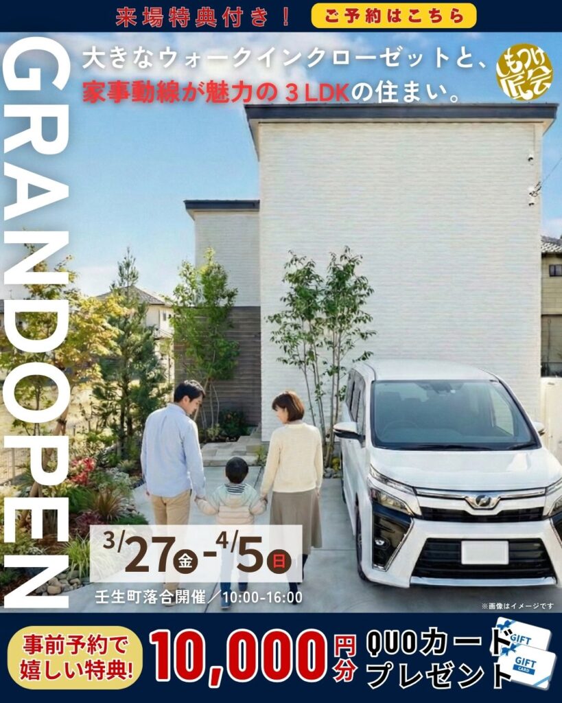 「しもつけ匠会」から、収納力と暮らしやすさを追求した「壬生東小モデル」がグランドオープンします。