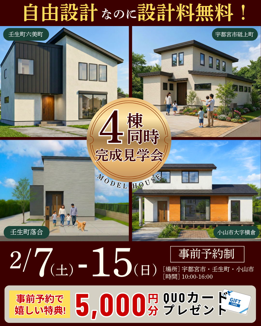 ■ 会場:宇都宮市・壬生町・小山市 各モデルハウス